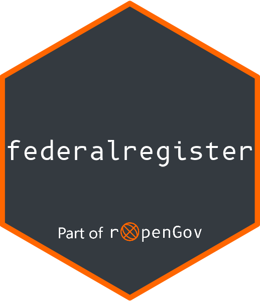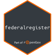 This package provides access to the API for the United States Federal Register. The API provides access to all Federal Register contents since 1994, including Executive Orders by Presidents Clinton, Bush, and Obama and all “Public Inspection” Documents made available prior to publication in the Register. The API returns basic details about each entry in the Register and provides URLs for HTML, PDF, and plain text versions of the contents thereof, and the data are fully searchable. The federalregister package provides access to all version 1 API endpoints.